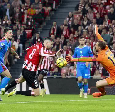 Una de las principales enseñanzas del partido de San Mamés es, una vez más, el escaso aporte defensivo de Nahuel Molina al sistema rojiblanco. Algo que se vuelve vital cuando enfrente tienes a un diablo como es Nico Williams. Y para muestra de la intensidad del encuentro, Gallagher, Jaureguízar y Ruiz de Galarreta verían como el árbitro les mostraba la tarjeta amarilla antes de llegar al minuto veinte de partido.