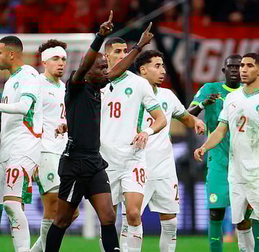 En los minutos finales, la selección de Senegal disponía de un córner a su favor que terminaría en gol. El equipo arbitral, decidía entonces, para sorpresa e indignación de los senegaleses, señalar una más que dudosa falta sobre el capitán marroquí. Esto desató las primeras protestas de los jugadores y cuerpo técnico.